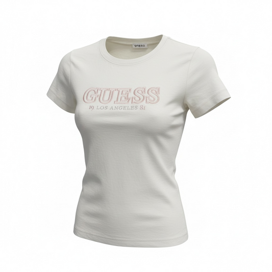 Shirt donna Guess con applicazione ricamo e strass sul davanti