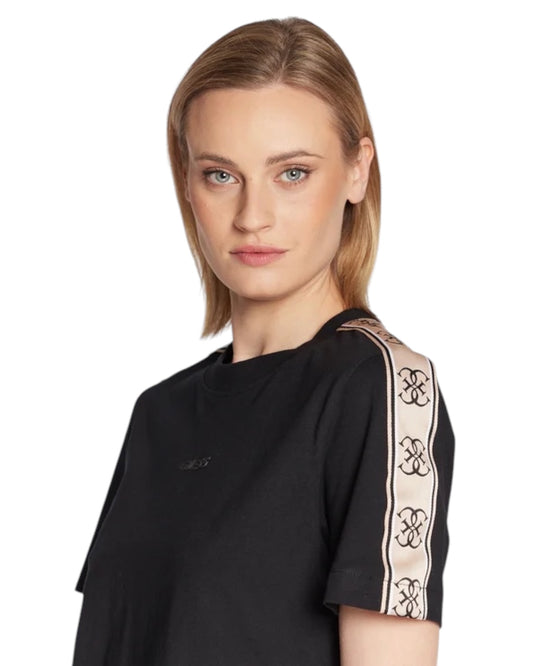 Shirt donna Guess modello cropped con banda laterale ricamata 4G