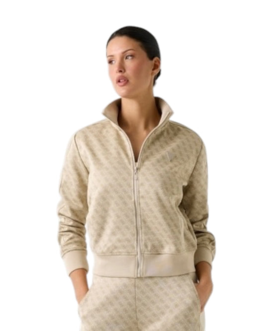 Tuta donna Guess composta dalla giacca con zip e logo lato cuore con pantalone vestibilità Baggy stampa All Over logo 4G