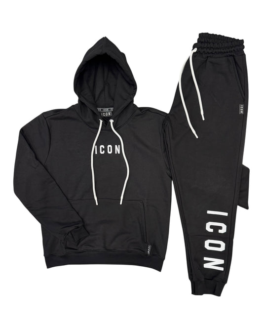 Tuta uomo ICON con felpa cappuccio e stampa centrale piccola e Jogger stampa al fondo