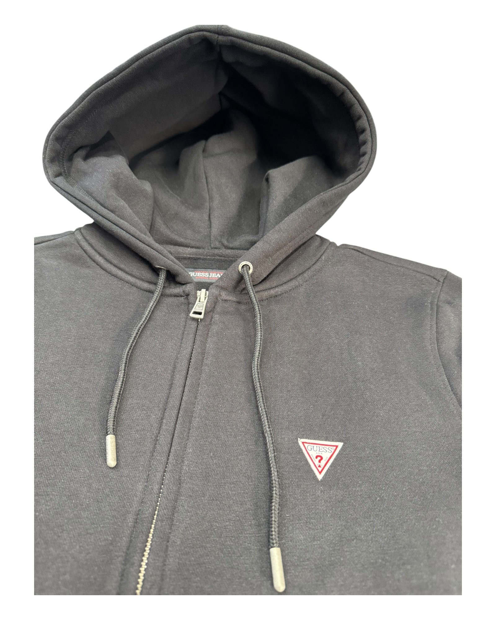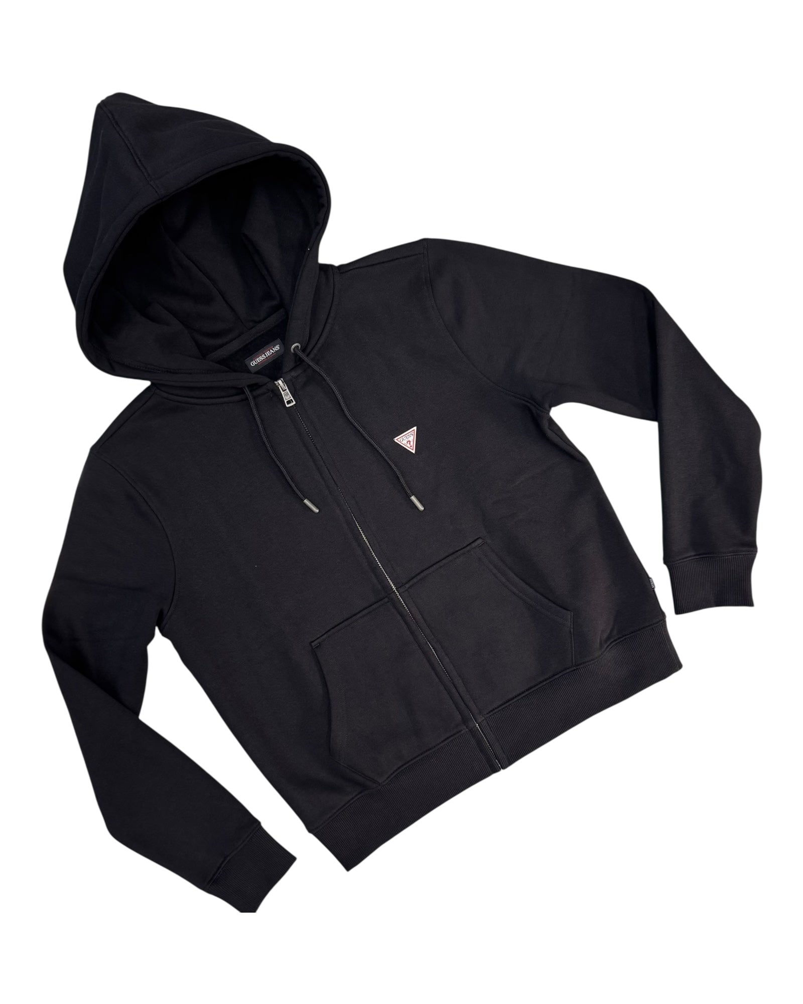 Felpa donna Guess con zip e cappuccio con logo piccolo ricamato su lato cuore in tessuto felpa garzata