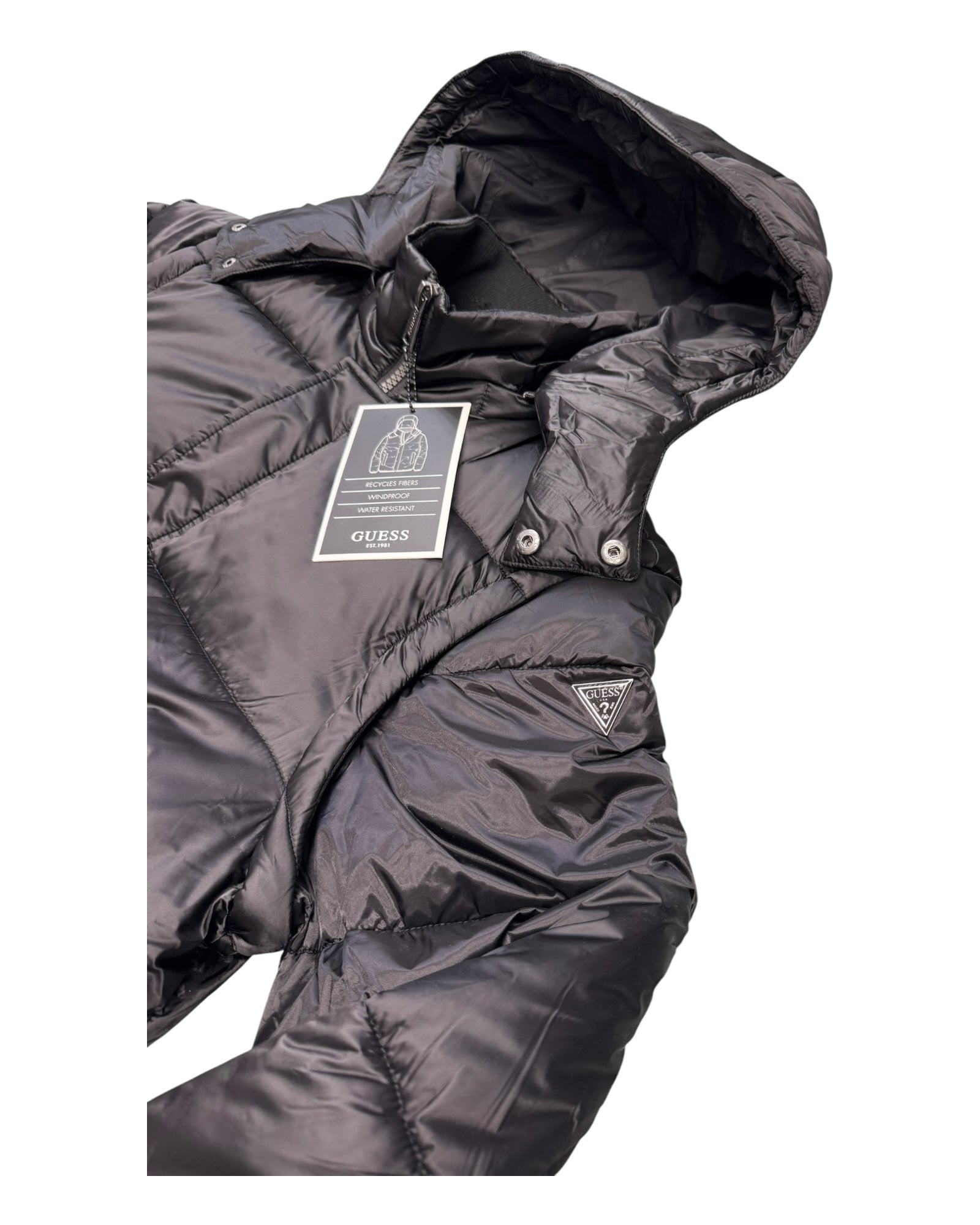 Piumino uomo Guess con stampa dietro che si puó utilizzare anche come smanicato con o senza cappuccio, le maniche ed il cappuccio si tolgono e si rimettono tramite una comoda zip