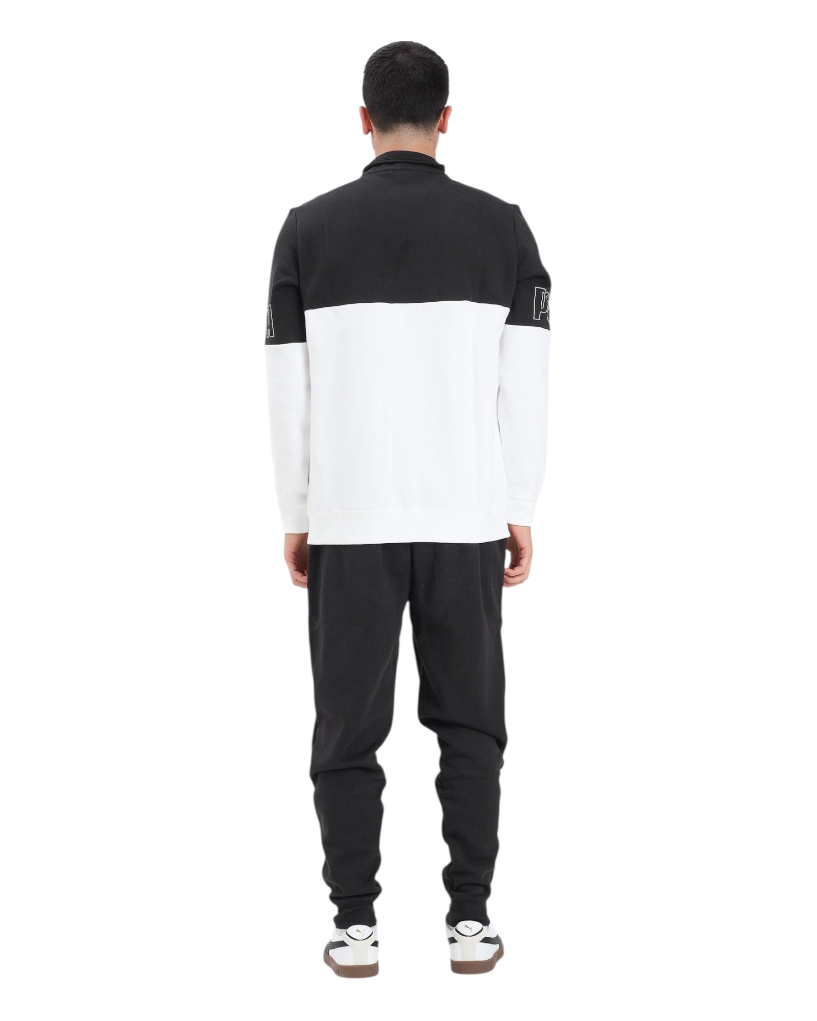 Tuta Puma uomo con felpa con zip e stampa su braccia con pantalone elastico al fondo