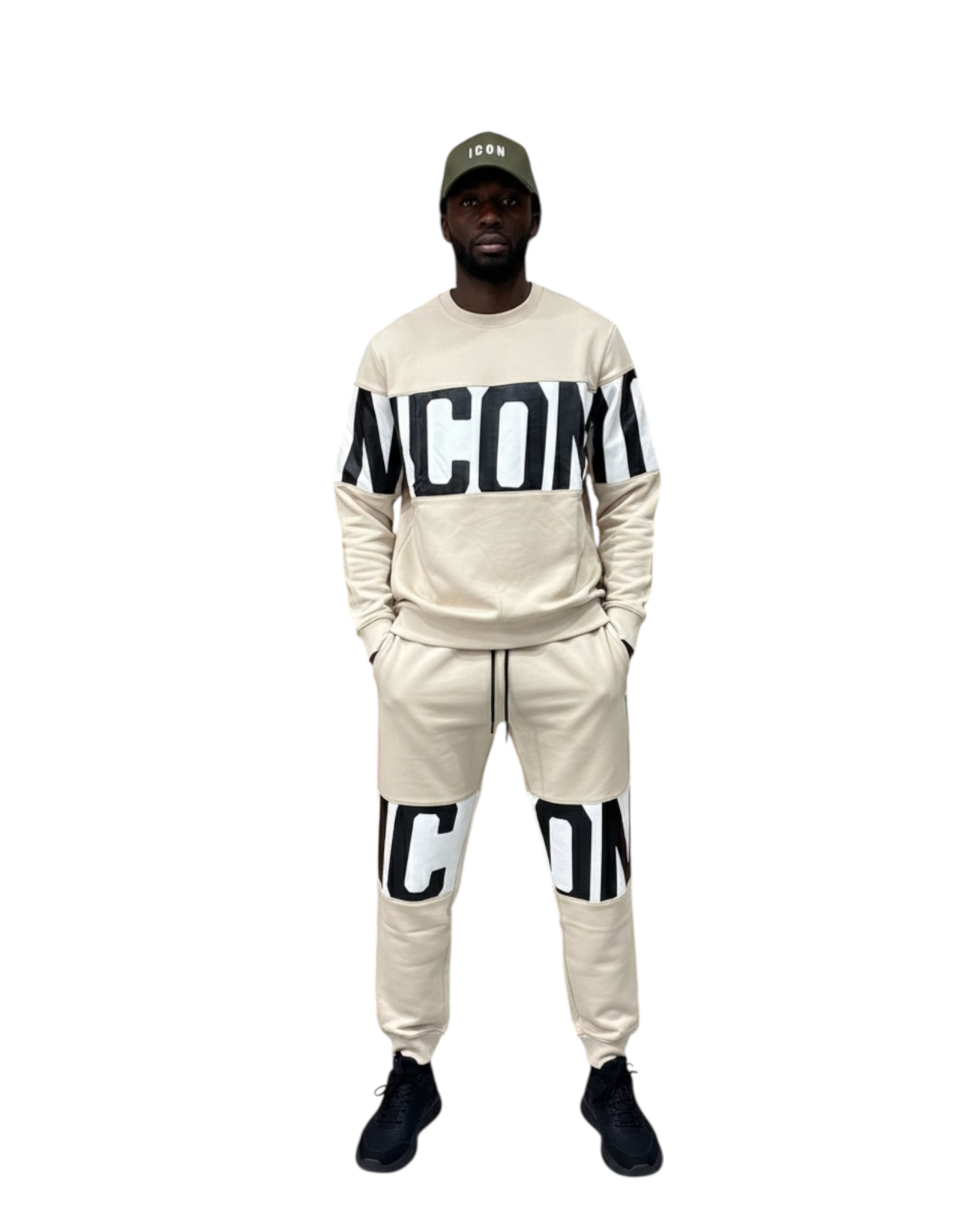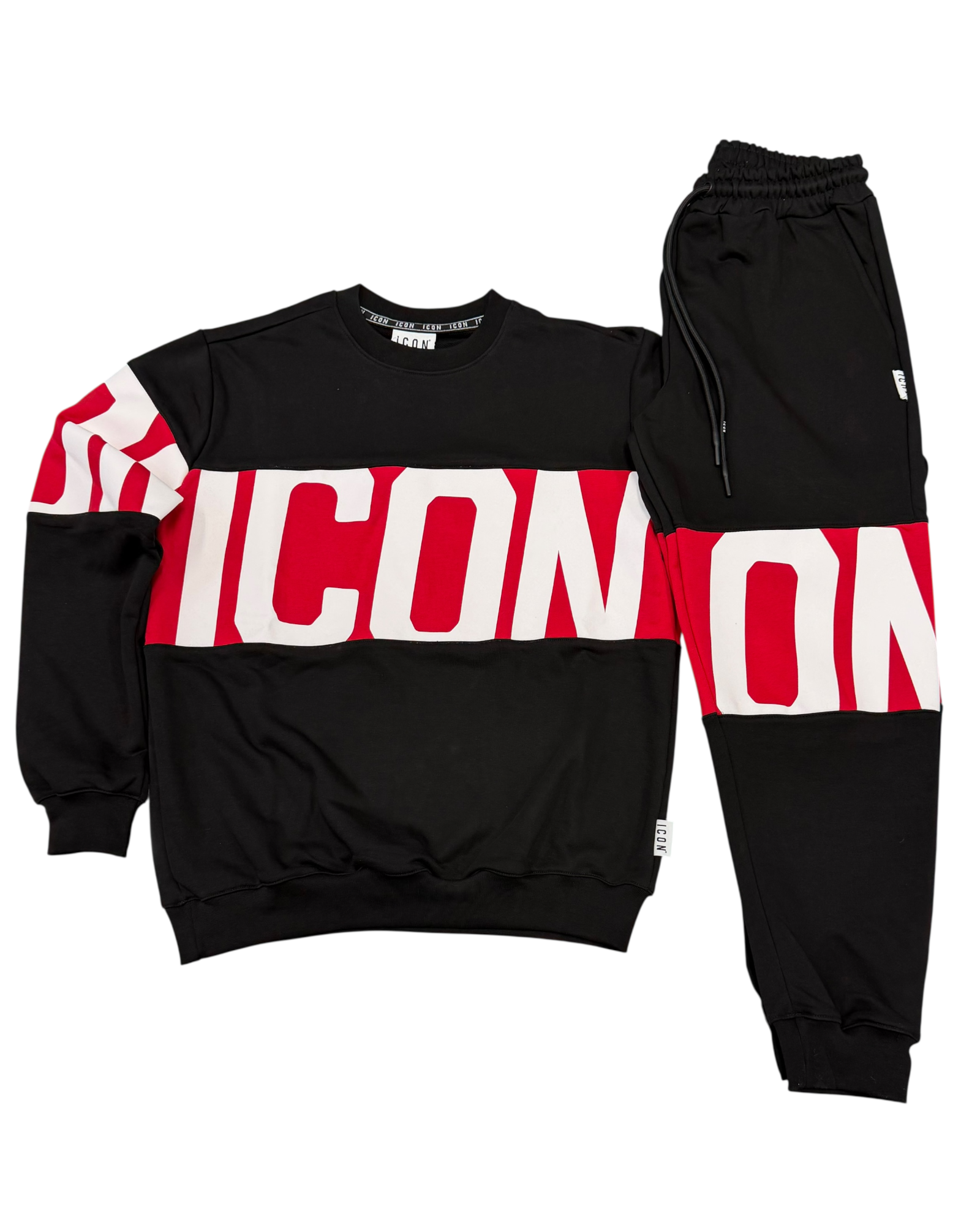 Tuta uomo ICON girocollo con stripe su felpa e Jogger stampa ICON avanti e dietro
